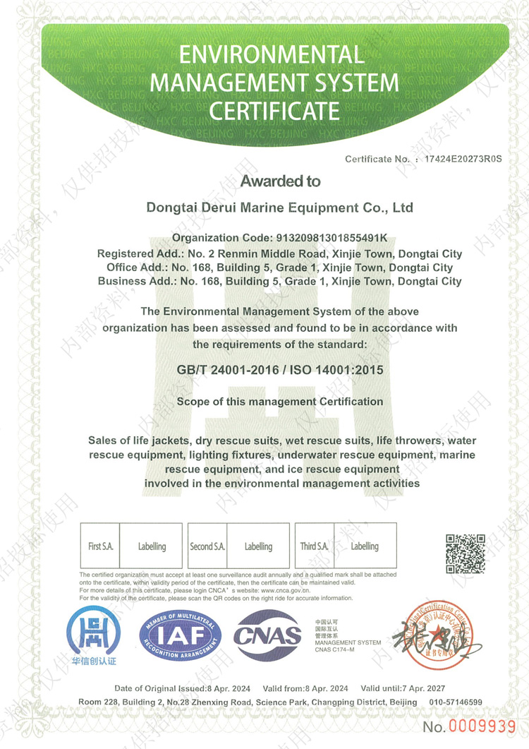 环境管理体系认证证书