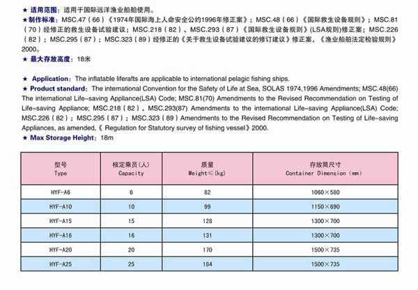 产品名称:抛投式救生筏/船用救生筏/6人10人15人20人25人