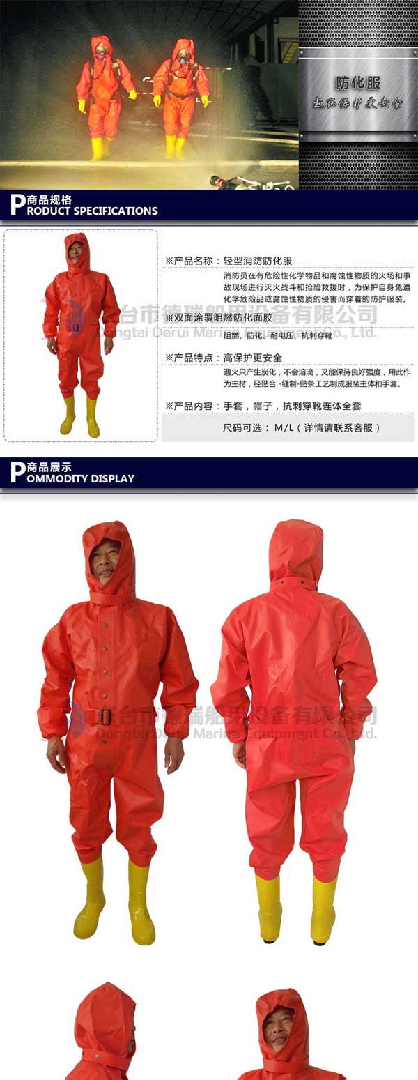 产品名称:轻型防化服/消防大队指定防化服/简易防化服/耐酸碱防化服